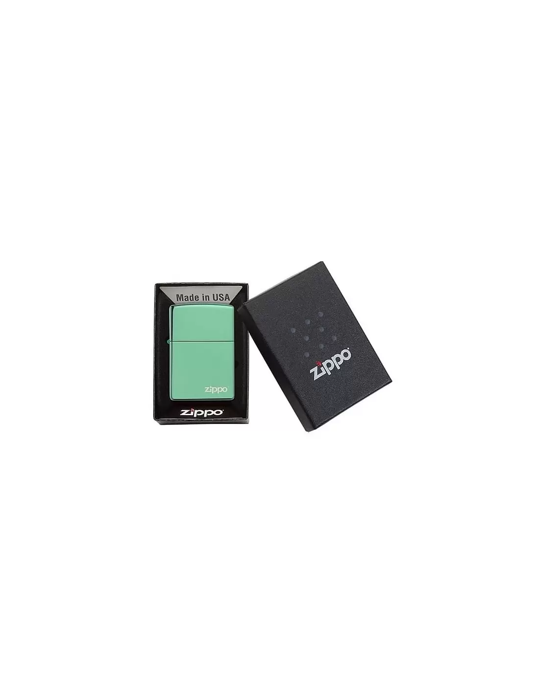 - فندکی که با توجه به رنگ محیطش در طیف رنگ سبز، تغییر رنگ میدهد و بر رویش نام زیپو درج شده است