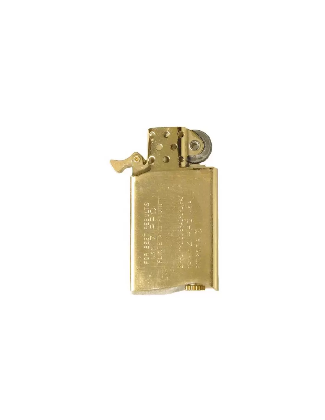 - مغزی فندک زیپو در نمونه های اورجینال طلایی و نقره ای و با رنگ بدنه یکسان است،